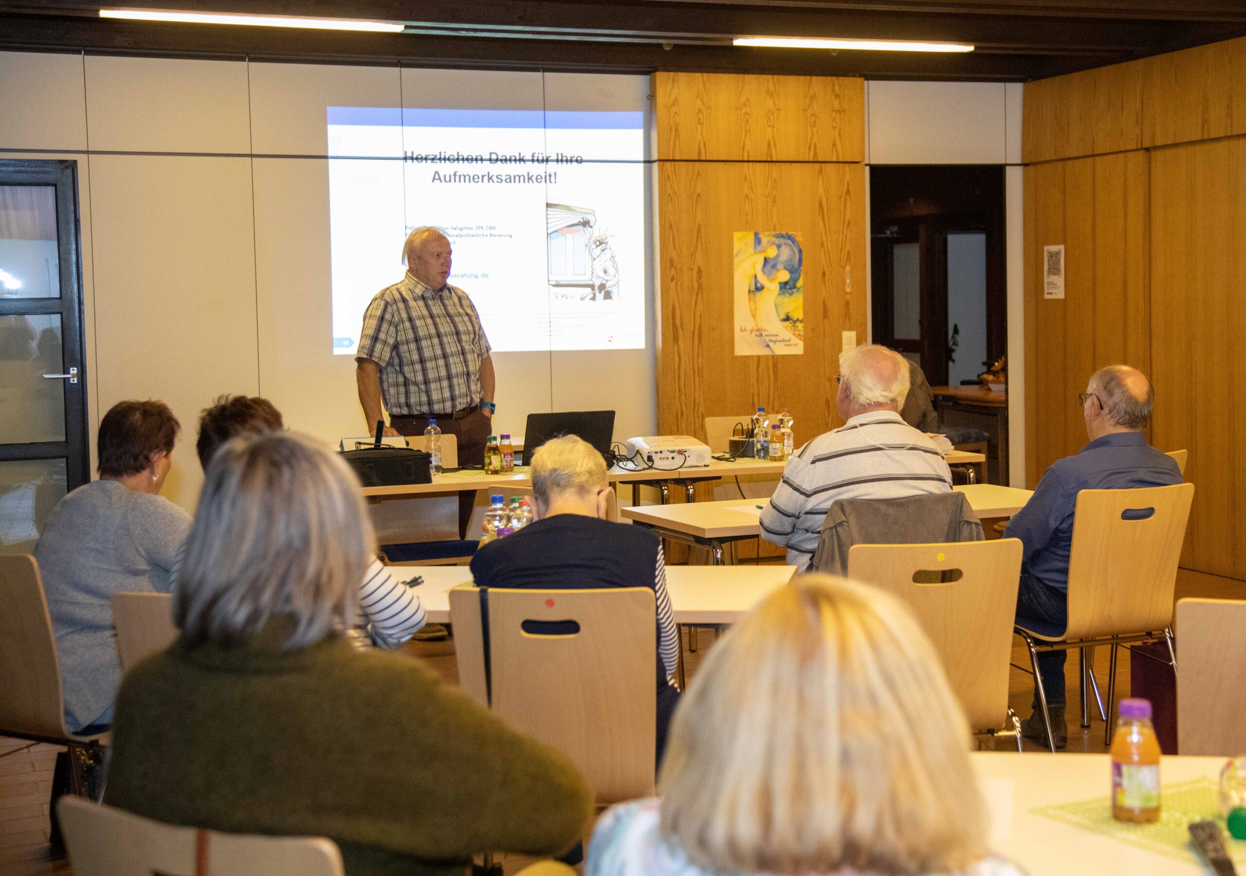 Kriminalhauptkommissar Herr Scharf hatte am 28.10.2022 ein interessantes Thema aufgegriffen, dass jeden von uns treffen kann. Es ging um Wohnungseinbrüche am Haus bzw. Wohnung. Er teilte uns mit, dass in der dunklen Jahreszeit wieder vermehrt Einbrüche stattfinden. Herr Scharf und sein Team kommen bei Anruf zu Ihnen ins Haus und klärt mit den Hausbesitzern ab, wo Schwachstellen am und im Haus sich befinden.